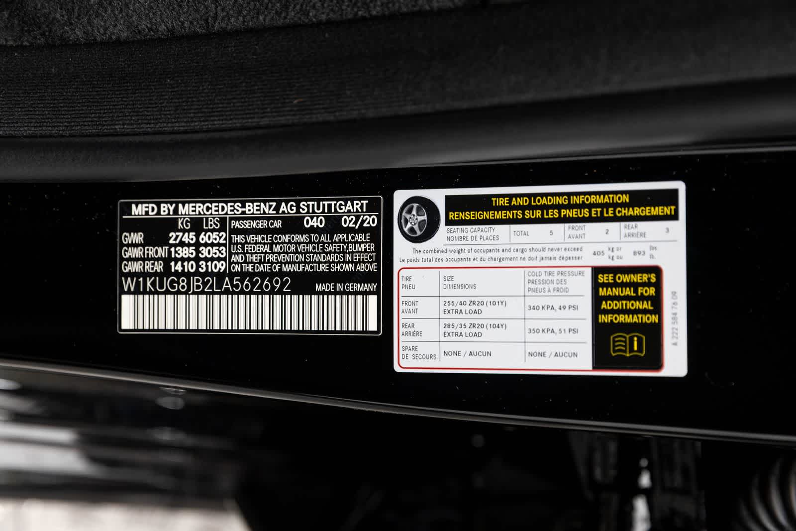 - Tires: 255/40R20 Fr & 285/35R20 Rr