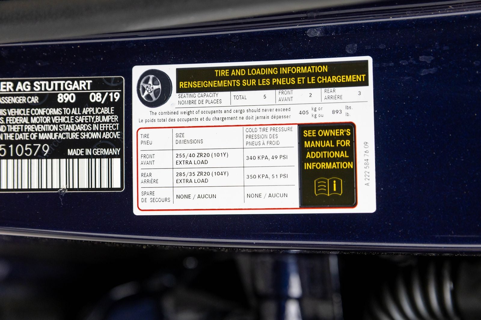 - Tires: 255/40R20 Fr & 285/35R20 Rr