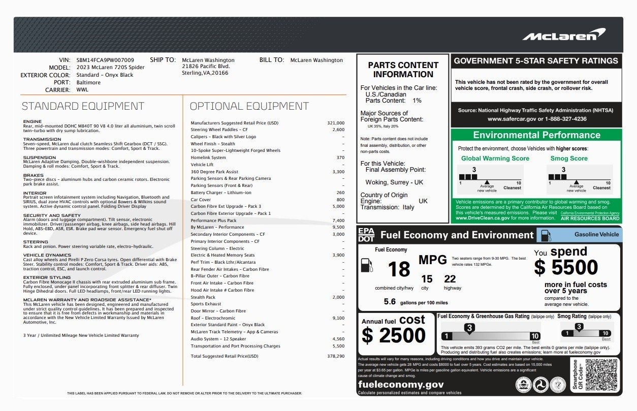 Onyx Black 2023 McLaren 720S Performance RWD 7-Speed Automatic 4.0L DOHC