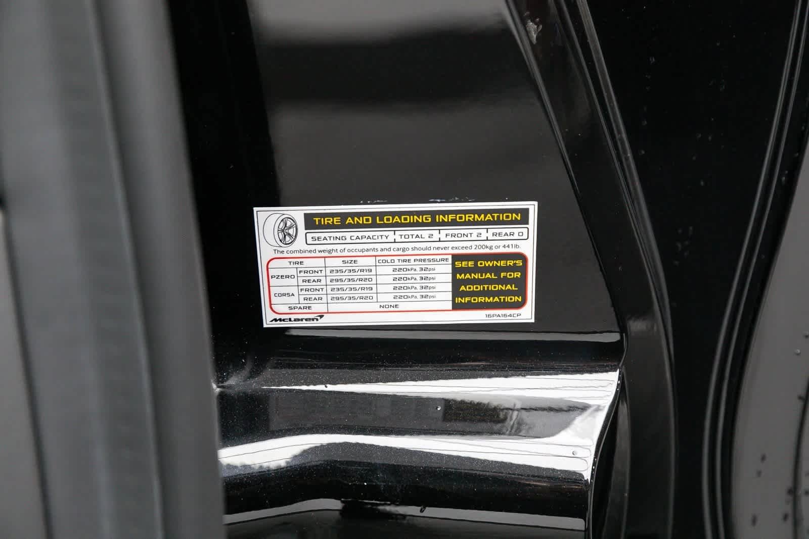 Welcome to McLaren Sterling! For assistance, please contact our Brand Manager, Michael Cramer at (571) 298-6073 or michaelcramer@lithia.com . Americas Accessories Pack, Practicality Pack, ABS brakes, Alloy wheels, Bowers & Wilkins 12-Speaker Audio System, Car Cover, Comfort Seats w/Power Adjust Heated Memory, Compass, Contrast Piping, Electronic Stability Control, Front dual zone A/C, Heated door mirrors, Illuminated entry, Low tire pressure warning, McLaren Orange Brake Calipers, McLaren Orange Seat Belts, Navigation System, Remote keyless entry, Sport Exhaust & Stealth Hot Vee Finishers, Technology Pack, Thermal Insulated Windscreen, Traction control, Wheels: 20 Dark Stealth Diamond Cut Dynamo.