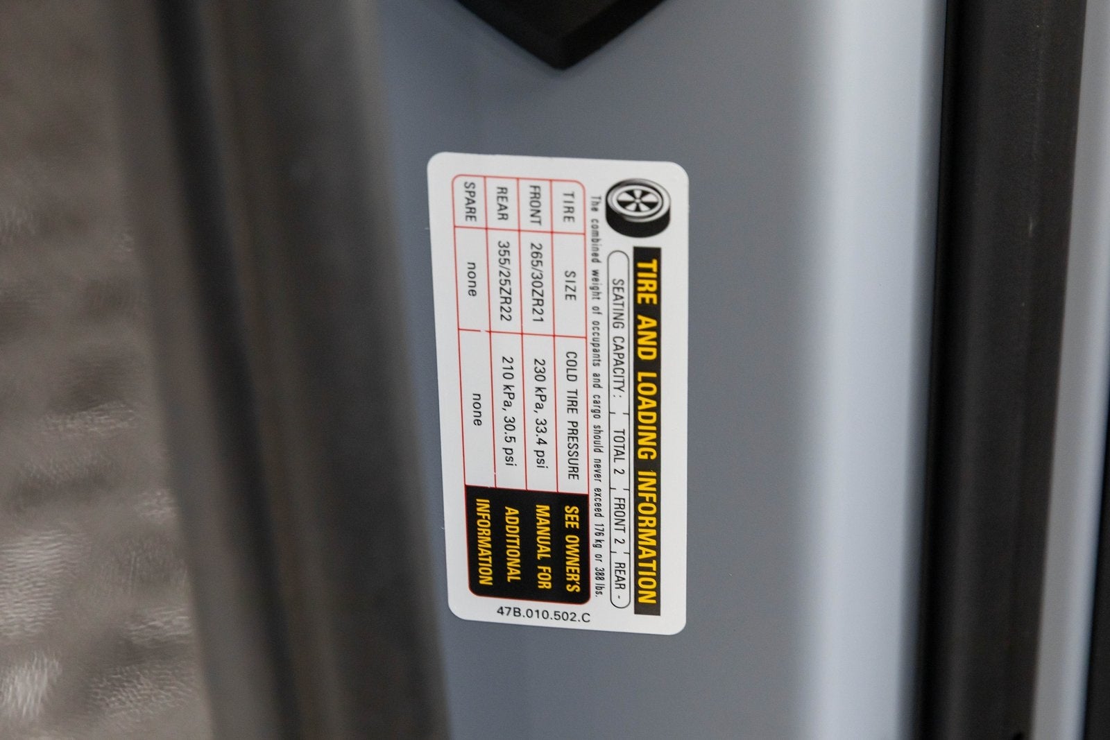 - Tires: 265/35ZR20 Fr & 345/30ZR21 Rr Runflat